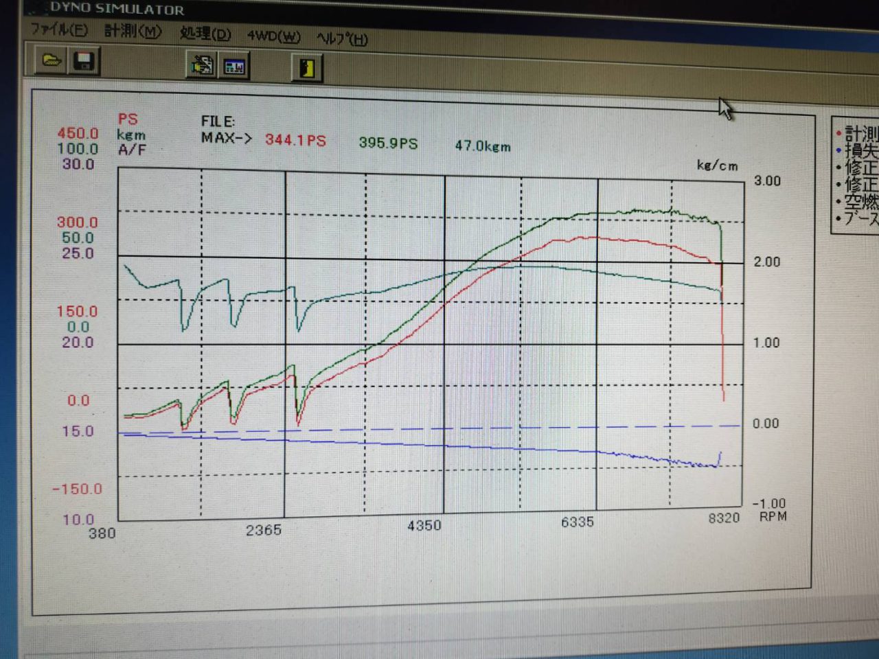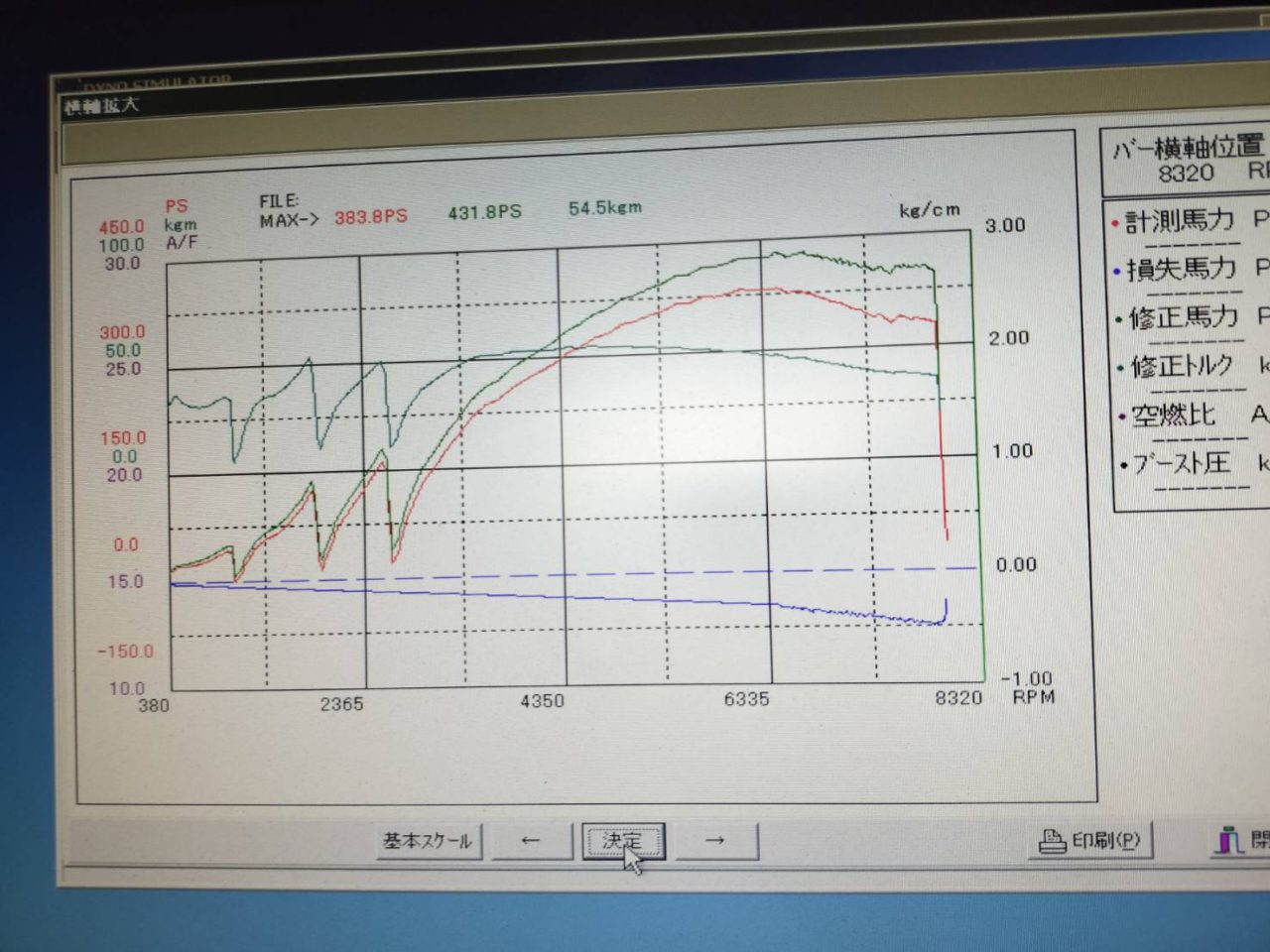 ノーマルブーストで431.8PS、54.5kgmと十分なパワーが出ました![]()
