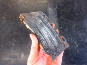 山道でブレーキを多用したらブレーキがフワフワになって煙が出たらしいですが、パッドが無くなって板だけになっておりました![]()