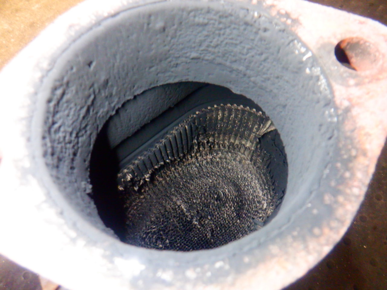セッティングする前に、前回の点検で気になっていた触媒の交換ですが、半分以上潰れておりました・・・![]()