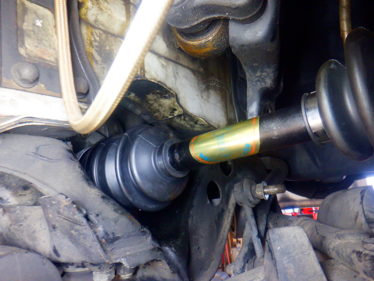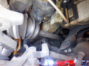 まずは運転席側のフロントドライブシャフトブーツ破れ修理![]()