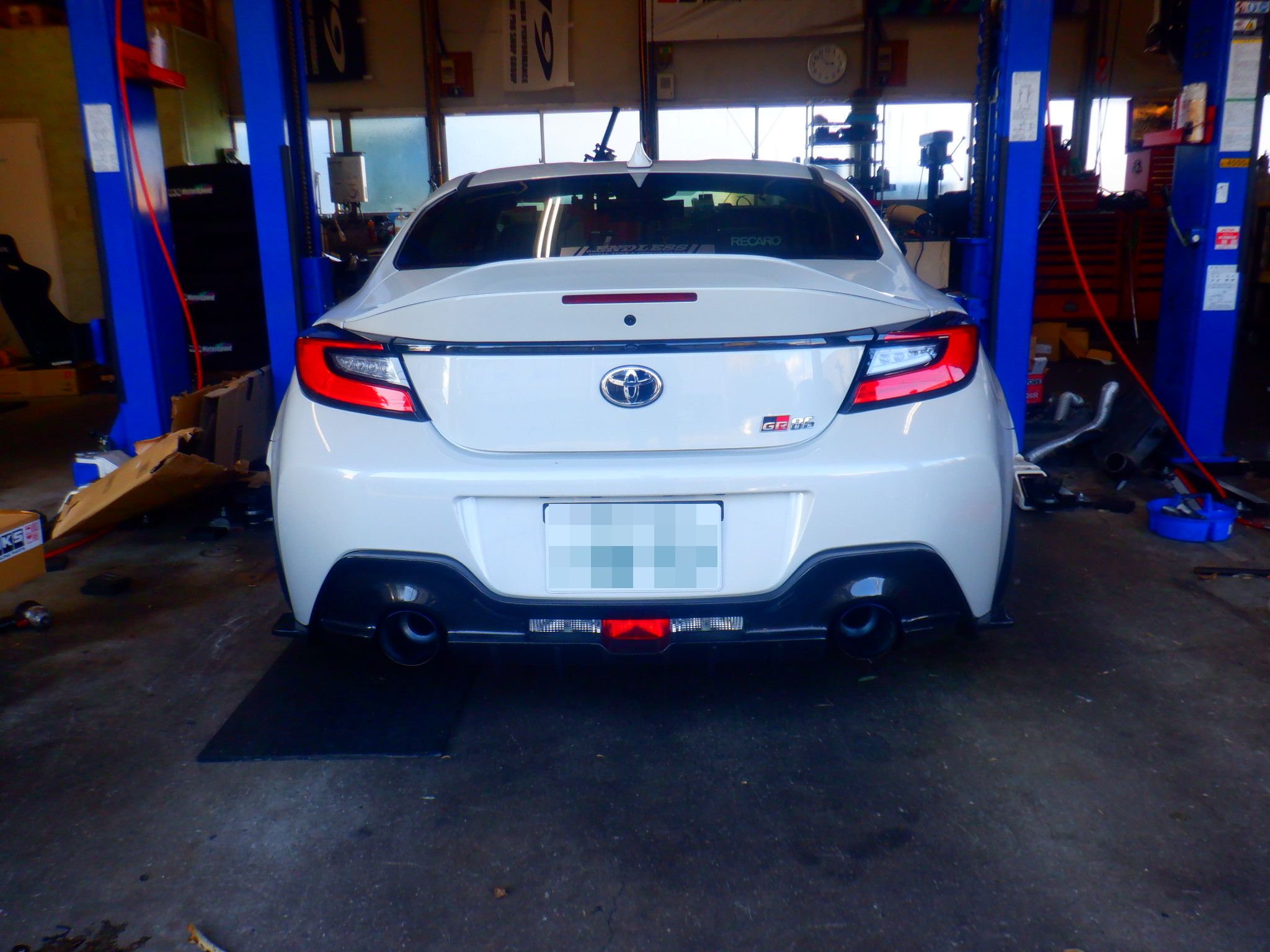 さて、中古車のGR86はブリッツのニュルスペックマフラーの取り付け![]()