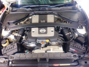 ご新規様Z34スーパーチャージャーは、エンジンオイルが漏れの点検でご来店下さいましたが、バンパー内にあるオイルクーラーから漏れている様で?後日にしっかり点検させて頂く事になりました。