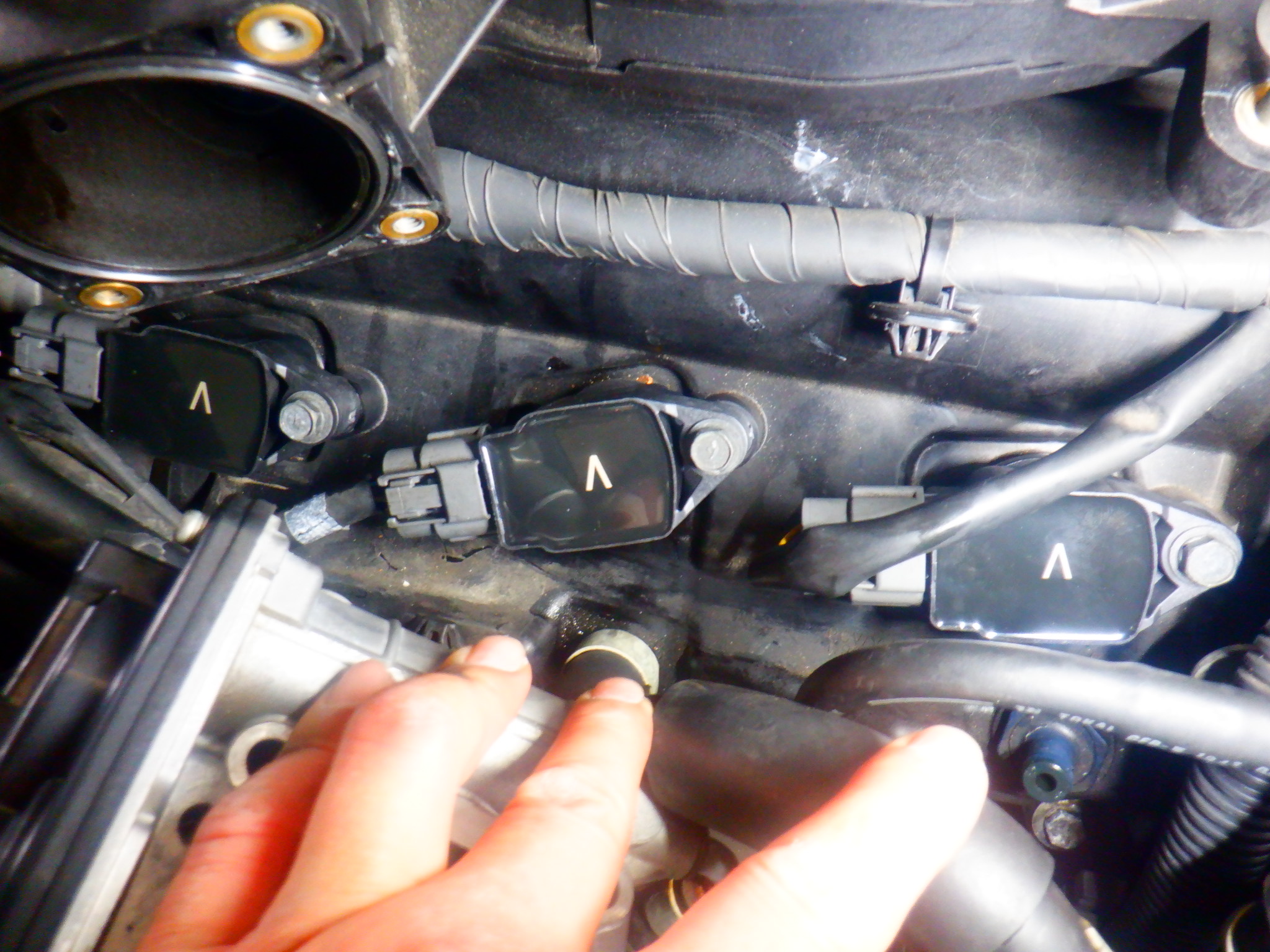 後はプラグ交換もご依頼でしたが、ブローバイパイプが折れて補修した形跡があり?そこがまた割れていたのでボンドで修復しておきました![]()