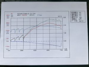 まずはリミッターカットして6速ギアでパワーチェックしましたが、ほぼカタログ値出てました![]()