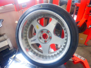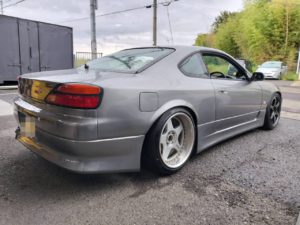 神戸市N君S15はフロントホイールがはみ出てしまいますので?前の車のホイールを持ってきていただきましたが、こちらもタイヤがないので入れ替えていきますcheeky