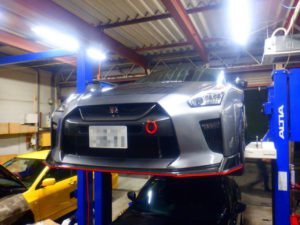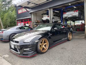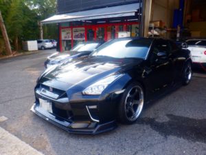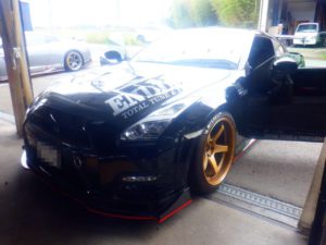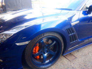 さて、明石市T様R35のフロントワイドフェンダー取り付けが完成しました