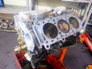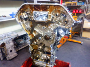 強化オーバーホール中のVR38は、HKS鍛造ピストン&RSE H断面コンロッドの組み込みが完了cool