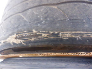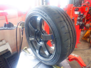 元々付いていたタイヤがワイヤーが出ていたので、今回はRE71-RSに交換です