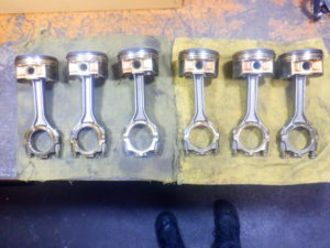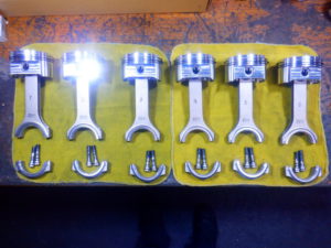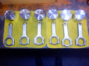 各パーツを洗浄して、HKS鍛造ピストンとRSE鍛造H断面コンロッドを組み込んでいきます