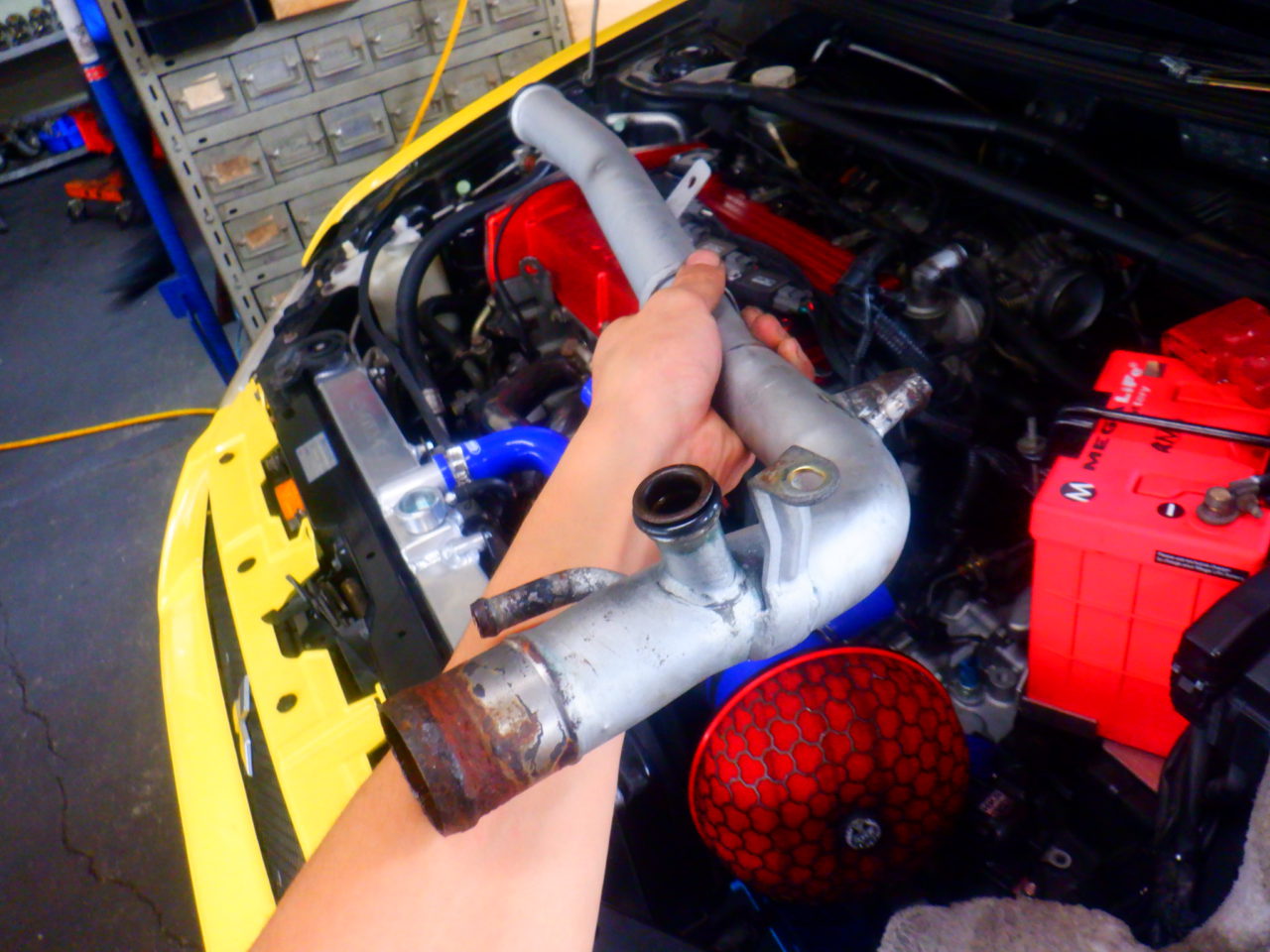 サーモスタットケースのパイプが錆びて漏れている様に見えましたので?ケース交換ついでにサーモスタットやパイプも新品交換しました