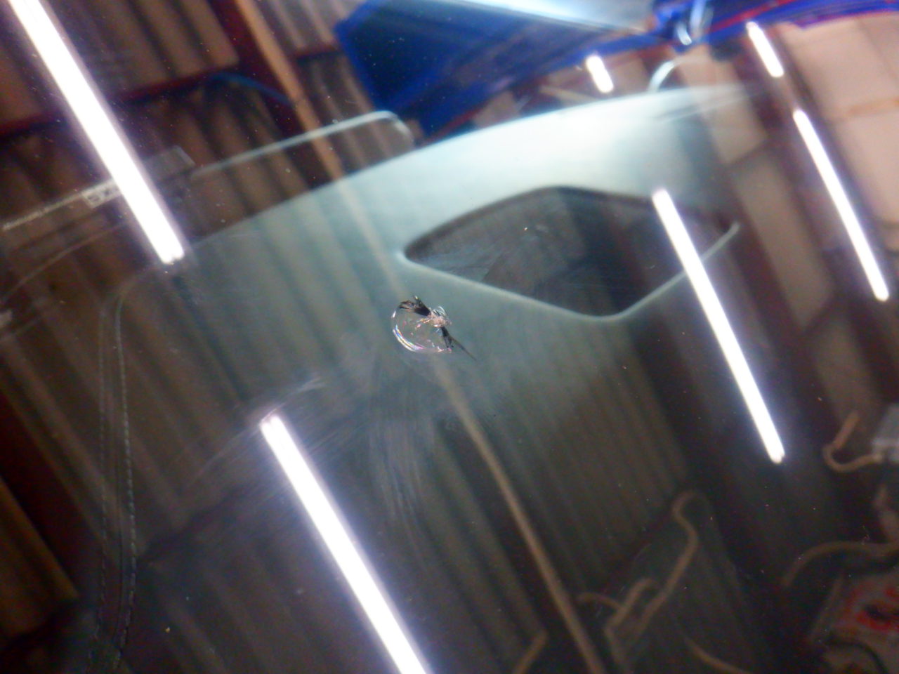 フロントガラスに飛び石で割れてしまったヒビ割れが有りましたので、リペアしました
