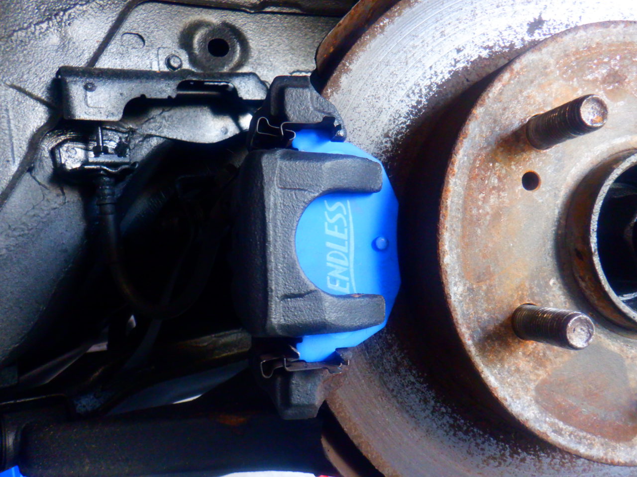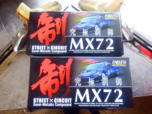どこのパッドか分からなかったので、今回は初期制動力のあるエンドレスMX72に変更します