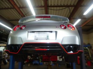 加古川市O様R35はトップシークレットさんのリアアンダーディフューザーフィンの取り付けでご来店![]()
