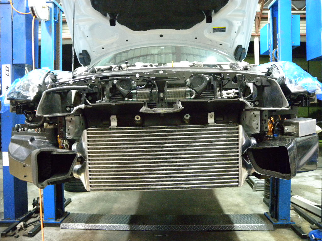 N様のR35はインタークーラー交換の為、バンパーの取り外しです