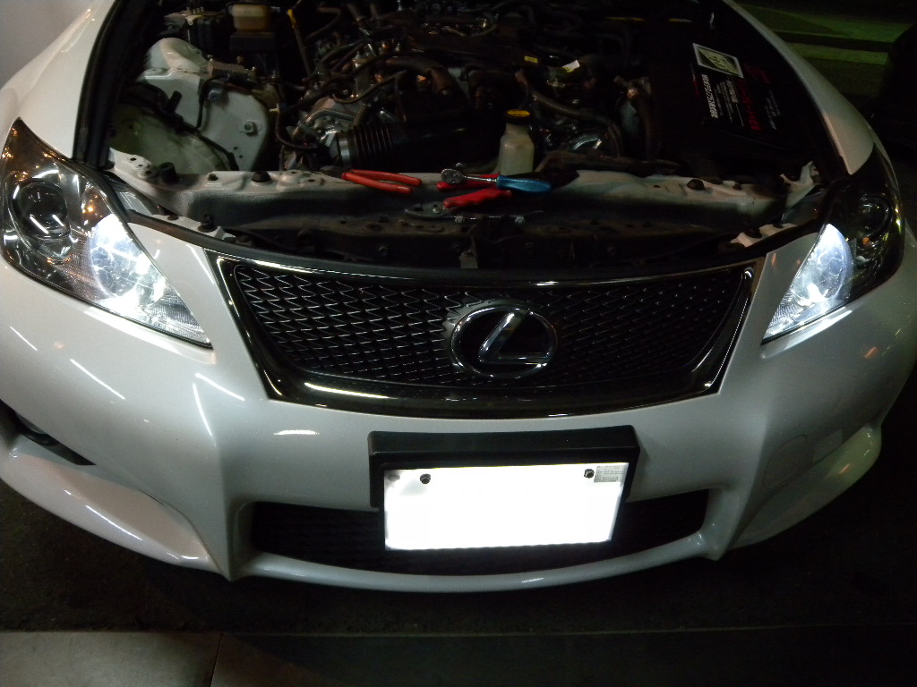IS-Fは字光式ナンバーに変更しますので、先にLED照明の取り付け