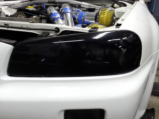 サーキット専用車なので飛び石の傷が付かない様に(クスミ隠しとも言うw)貼りましたが、レーシングカーみたいでカッコいいですね