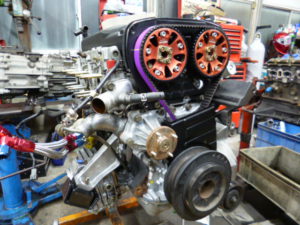 乗せ換え中のRB26はHKS強化タイミングベルトの取り付け