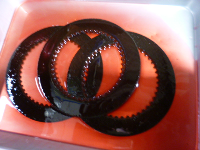 湿式クラッチですので、オイルに浸してから組み込み、クリアランス調整して完成