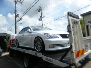 中古車のクラウンはお買い上げいただきましたので、アライメント調整して岡山へ納車完了
