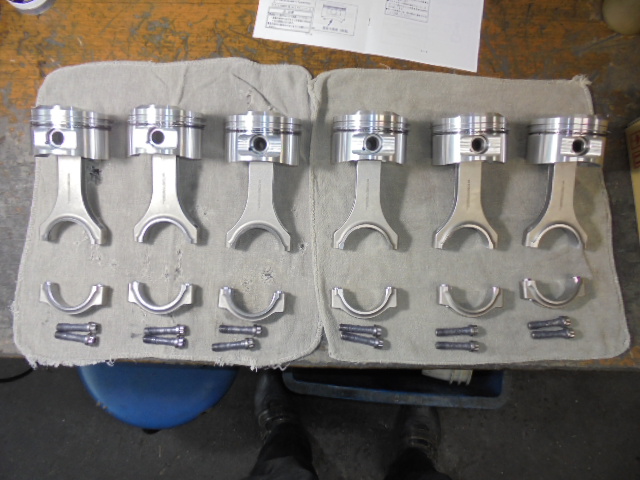 O/H中のRB26は、結局クランクシャフトが届きませんでしたので、先にピストン&コンロッド組み立てとシール類の交換、洗浄を先に終わらせました![]()
