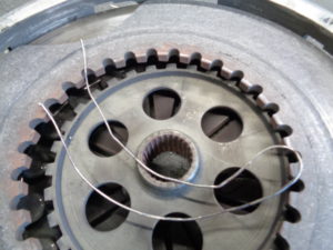 クラッチはカーボンシングルでしたが、センターハブの針金が外れてディスクが落ちていました・・・![]()
