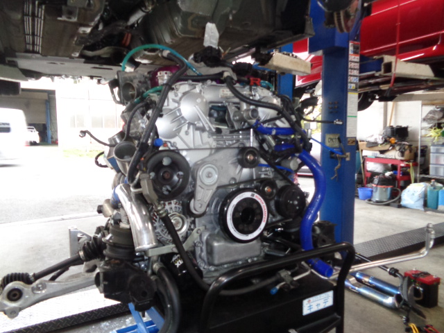 今日はパープル君のタービン交換準備でエンジン降ろしました