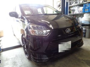 BNR32でお世話になっている徳島県A君は通勤用ミラの車高調整でご来店