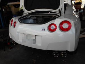 さて、大阪府Y様R35のリヤバンパーの交換させていただきました