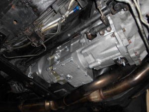 OS技研シーケンシャルミッションを搭載したTさんBNR32は、フロントパイプがミッションに接触しましたので、板金して取り付け