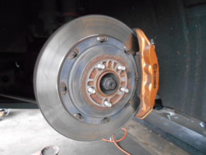 ディクセルさんのスリットローターが入っておりましたが、スリットが無くなるぐらい摩耗していましたので交換のご依頼です