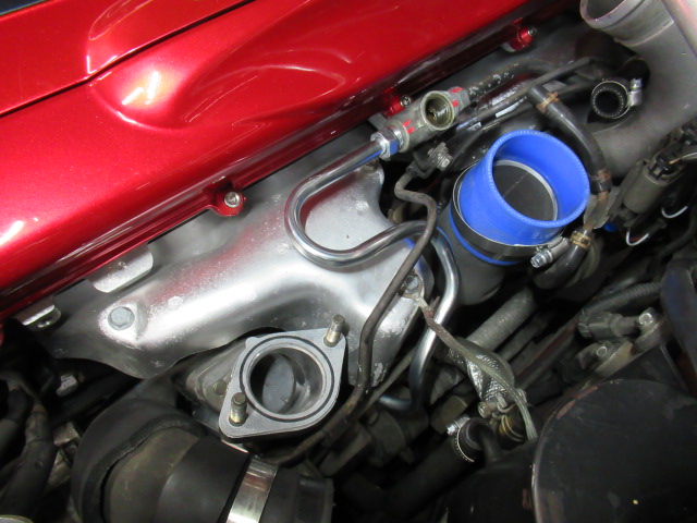 静岡県HさんBNR32は、慣らし運転が終わったとの事で点検に来られましたが、タービンのウォーターパイプからクーラントが漏れておりましたので、新品交換しました
