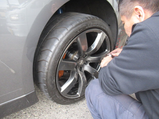 姫路市O様R35は、ご自分でワイドトレッドスペーサーを取り付けたら、ナットが取れなくなったとの事で?点検しました