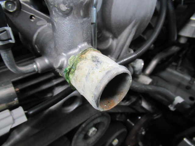 ラジエターホースがつながるパイプもクーラントの漏れなのか?かなり腐食が進んでおりましたので洗浄しておきました