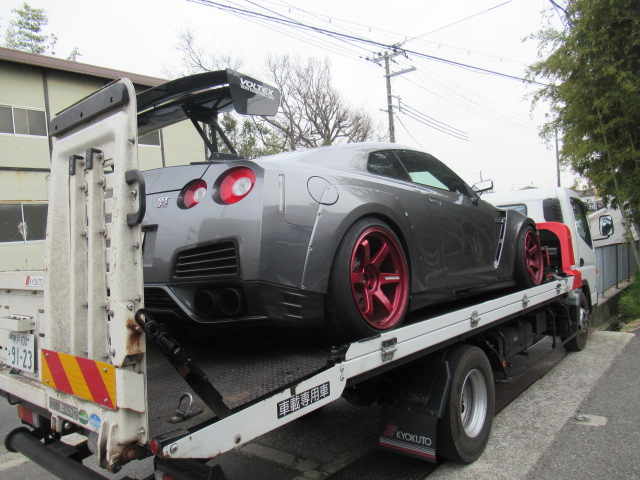 さて、大阪府M様R35ですがサーキット走行中にミッション異常が発生し、引き取りに行ってきました