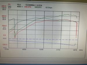 エンジンの仕様は不明ですが、ブースト圧1.3キロで何と540馬力も出てしまいました