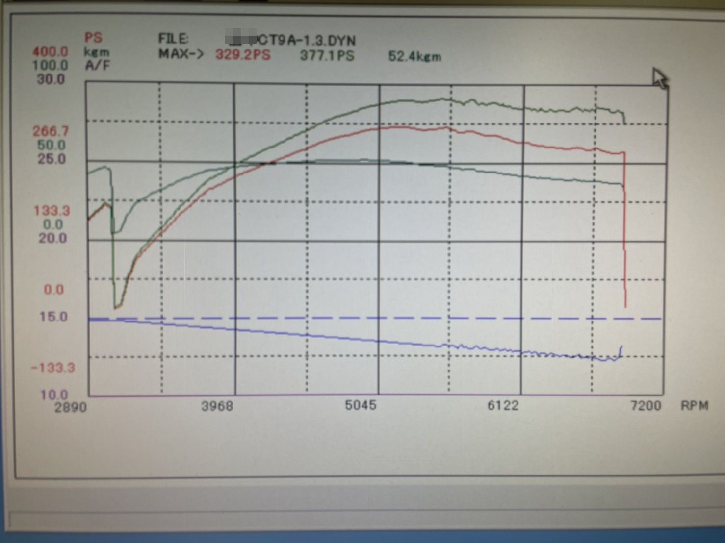 排気量アップ&社外タービンみたいで?377馬力もでてますが、タービンが小さいのでピークパワーが5000rpm・・・