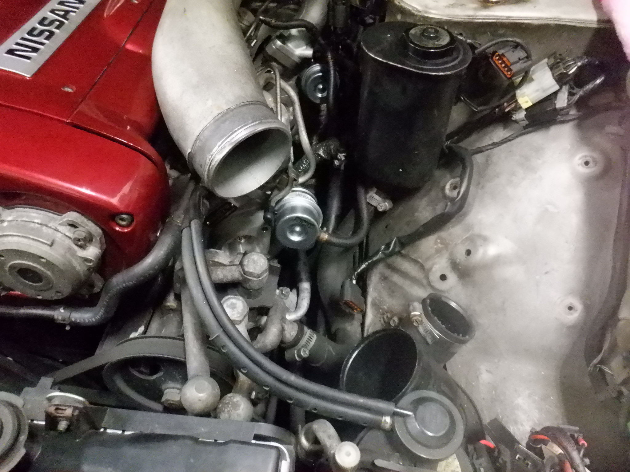 神戸市FさんBNR32は、結局HKSのレーシングサクションを取り付けることになりましたので?取り付けた純正サクションを取り外し・・・