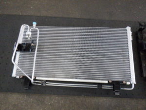 さて、エンジンチューン中の神戸市MさんBNR32は、エンジンが降りている内に緑整備センターさんの新ガスエアコンキットを取り付けます