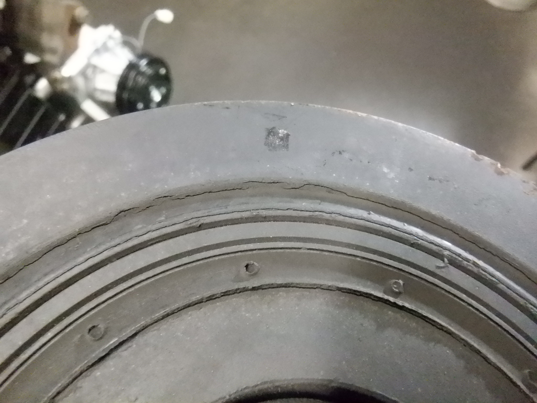 クランクプーリーも錆びてゴム部分もかなりひび割れておりましたので、交換のご依頼です![]()