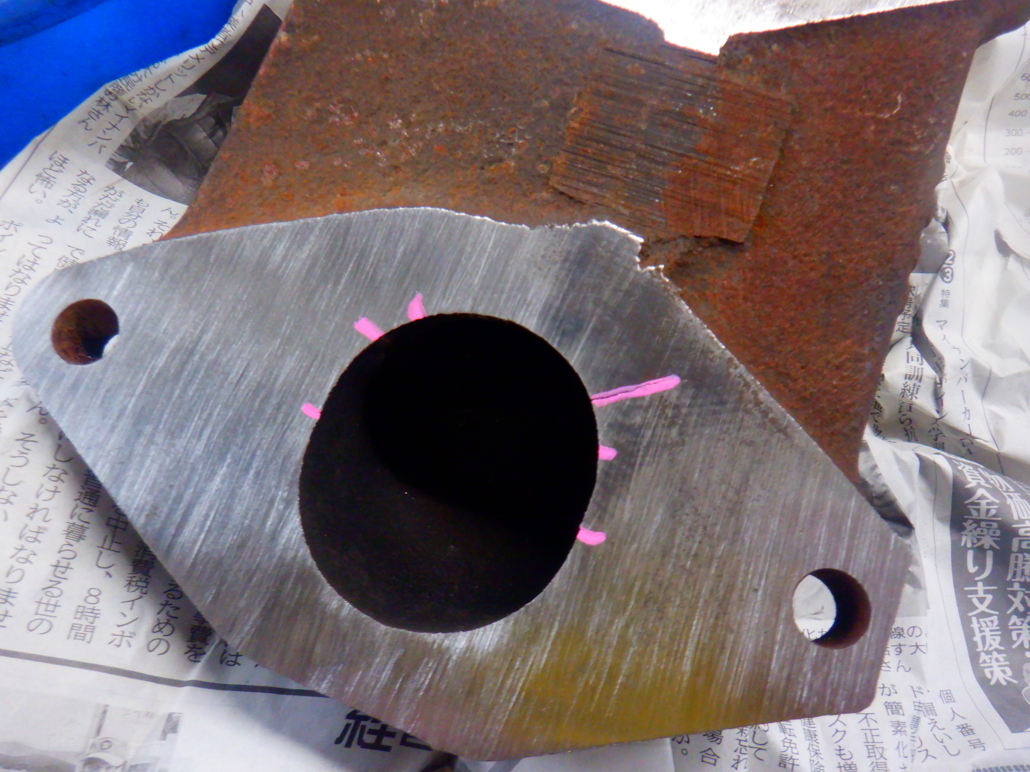 細かい亀裂を合わせると6箇所割れてましたので、グラインダーである程度削ります