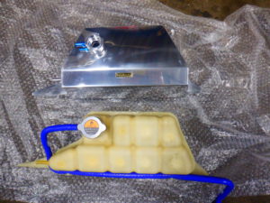 漏れた痕跡が有りましたので、今回はトップシークレットさんのアルミリザーブタンクに交換します