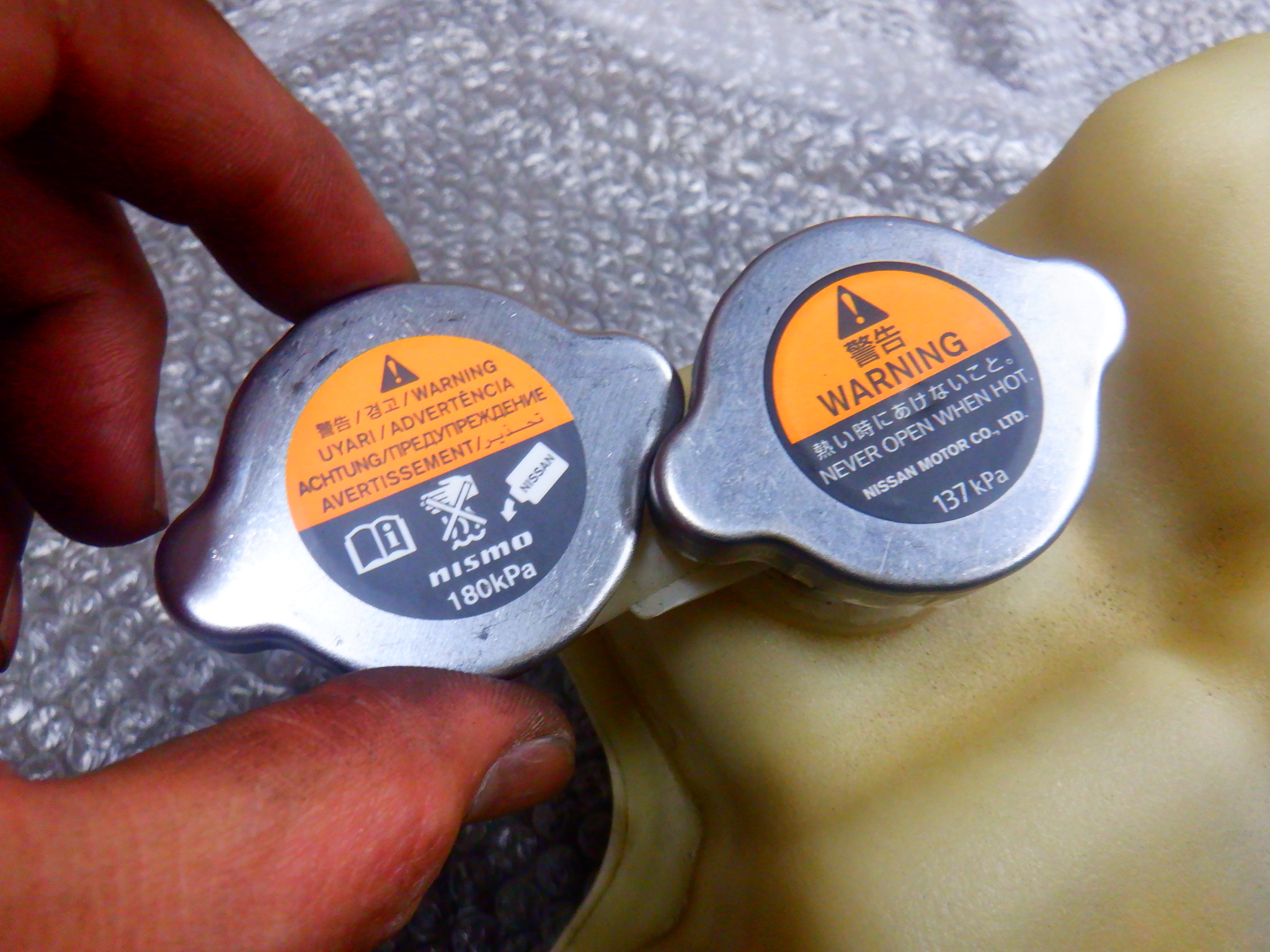 漏れた痕跡が有りましたので、今回はトップシークレットさんのアルミリザーブタンクに交換します