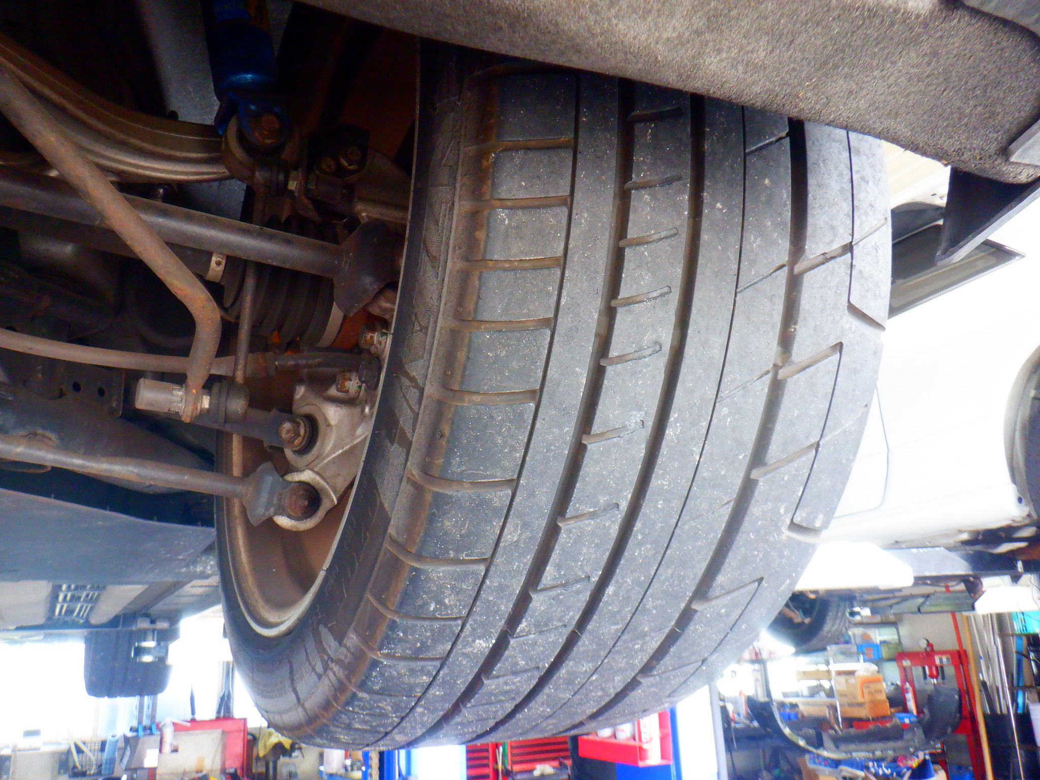 後はタイヤですが、フロントタイヤの磨耗とリアタイヤは溝は有るものの?ひび割れておりましたので、4本とも新品交換のご依頼です![]()