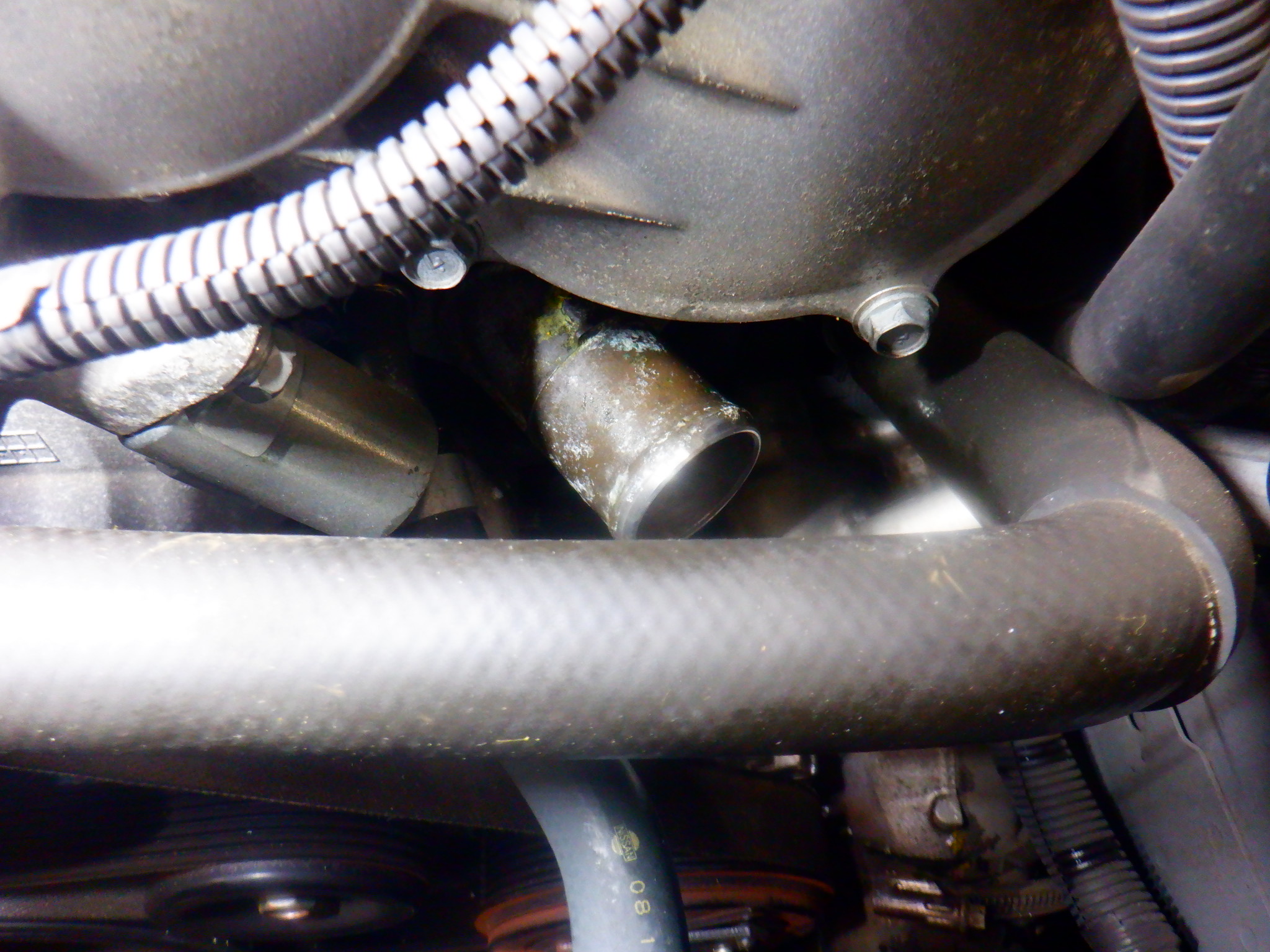 ラジエターホースを外すと少しずつクーラントが漏れたのが固まり、カサブタの様に膨れ上がった状態になっておりました・・・![]()