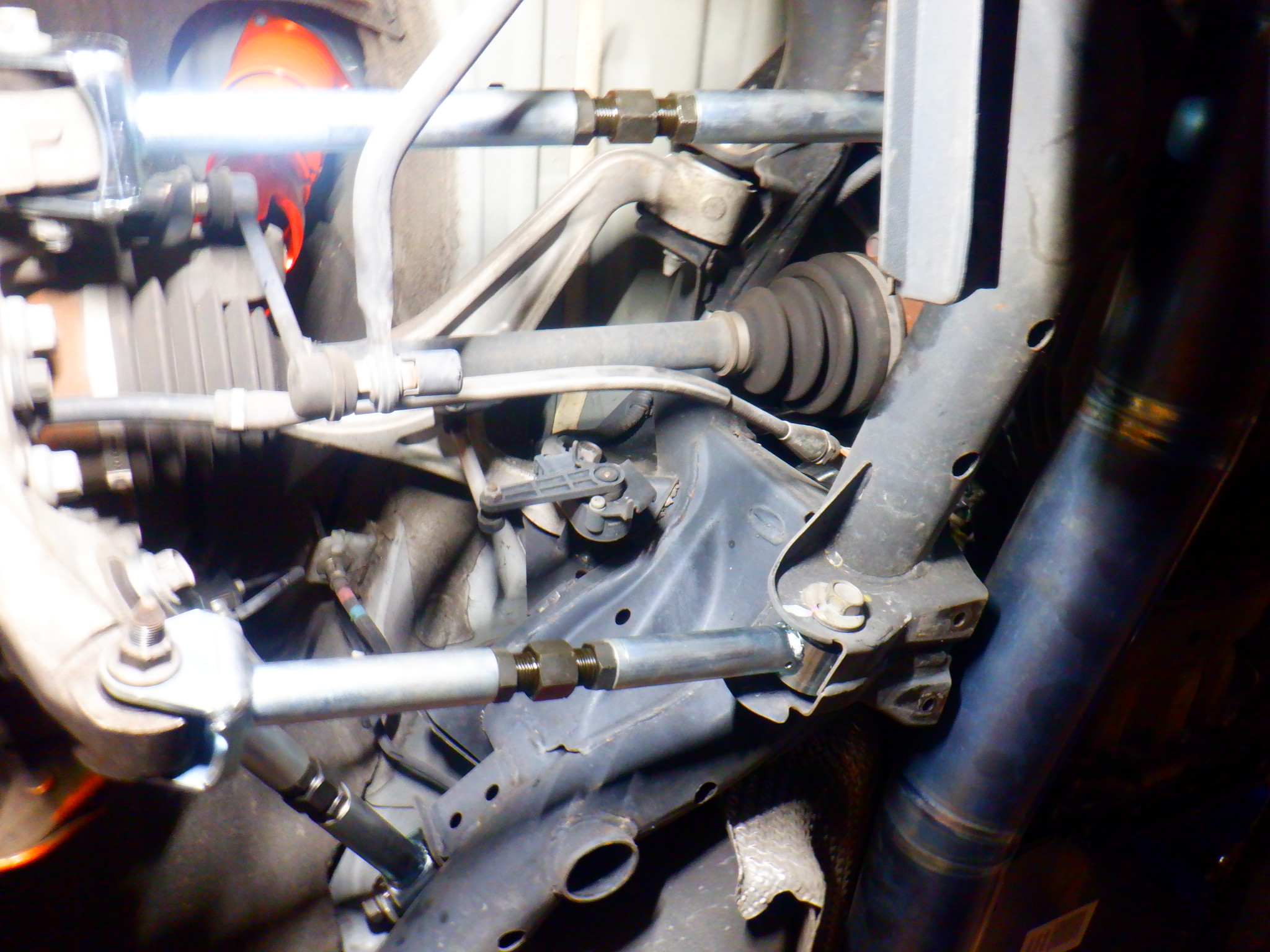 続いて調整式のリアキャンバーアーム、トーコントロールアーム、テンションアームの各ピロアームを取り付け![]()