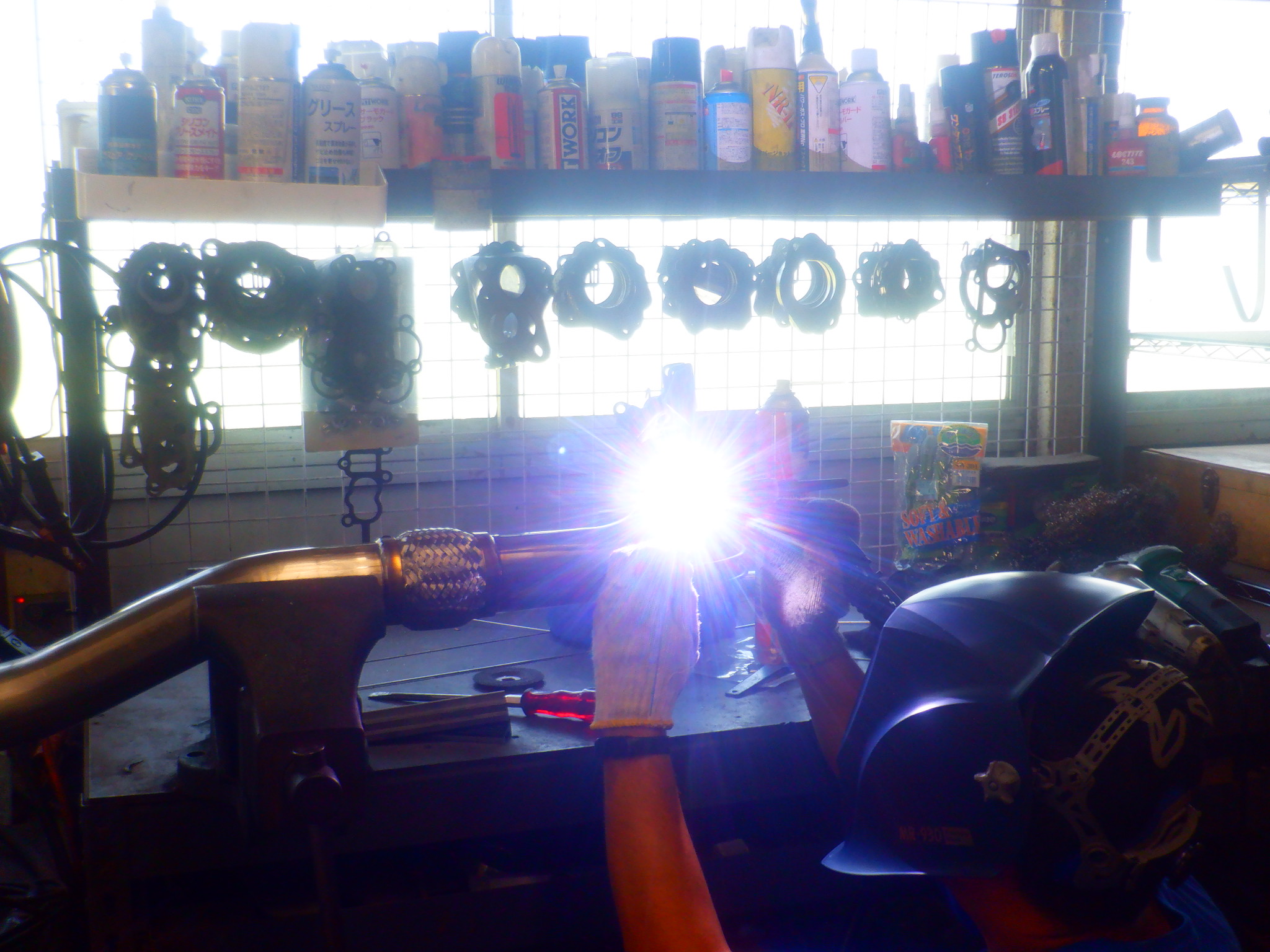 フロントパイプにセッティング用のA/F計センサーボスを溶接止め