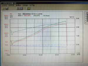ブースト圧1,4キロで543馬力トルク54kgmで良い感じですが、1,5キロ以上かけると高回転域で失火症状が出ているので?イグニッションコイルかパワトラがそろそろ限界かもしれませんね~![]()