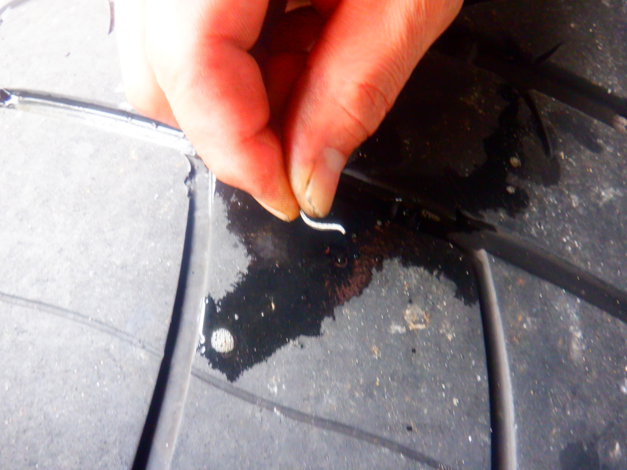 続いて少しずつ空気が抜けるタイヤを修理して欲しいとのご依頼ですが、何か刺さっておりましたので?まずはココを疑いました。