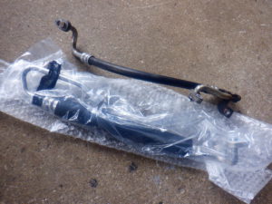 この前にエアコンホースのガス漏れ点検させて頂いたBNR34は、ホースを入手されたとの事で交換のご依頼です