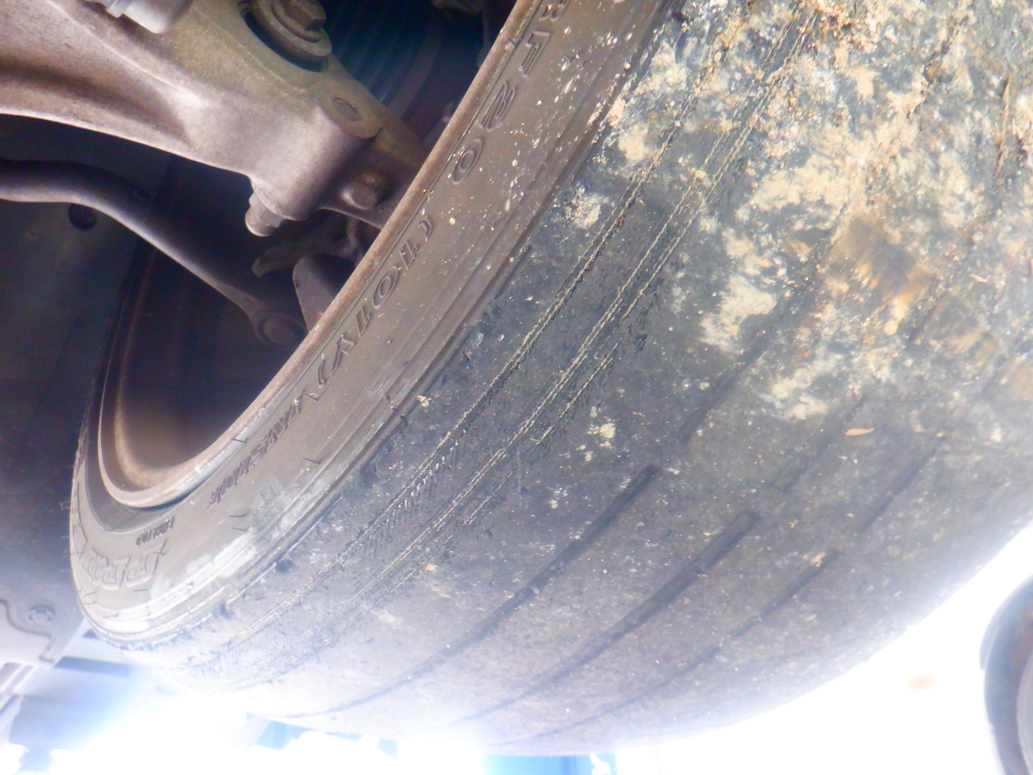 ミッション修理中の姫路市N様R35は、車検もご依頼いただきましたがタイヤがバースト寸前ですので交換していきます
